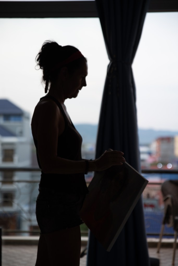 “I was working as a researcher at the institute of clinical immunology in Novosibirsk. I liked the job but wasn’t fully satisfied with it. When my mom suddenly passed away I realised that whenever you want to do something you shouldn’t wait. Because we never know untill when we have the time to do it. I decided to pursue this dream I had. Painting. After following a 10- day painting workshop in Sihanoukville I fell for Cambodia. One year later I booked a one way ticket and never came back.”