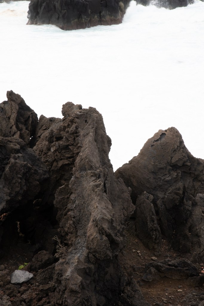White foam against black volcanic ground
