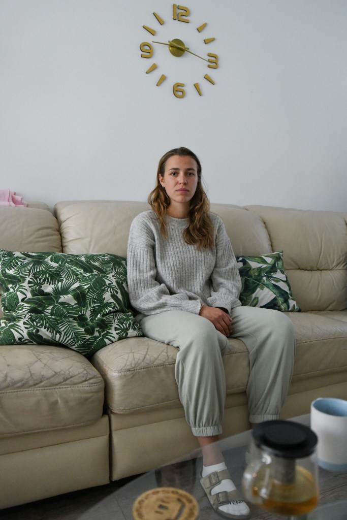 Angeliki Gianniou (22) has been sleeping on her friend’s couch for two months. She can’t fully stretch her legs while sleeping, because the couch is not tall enough.